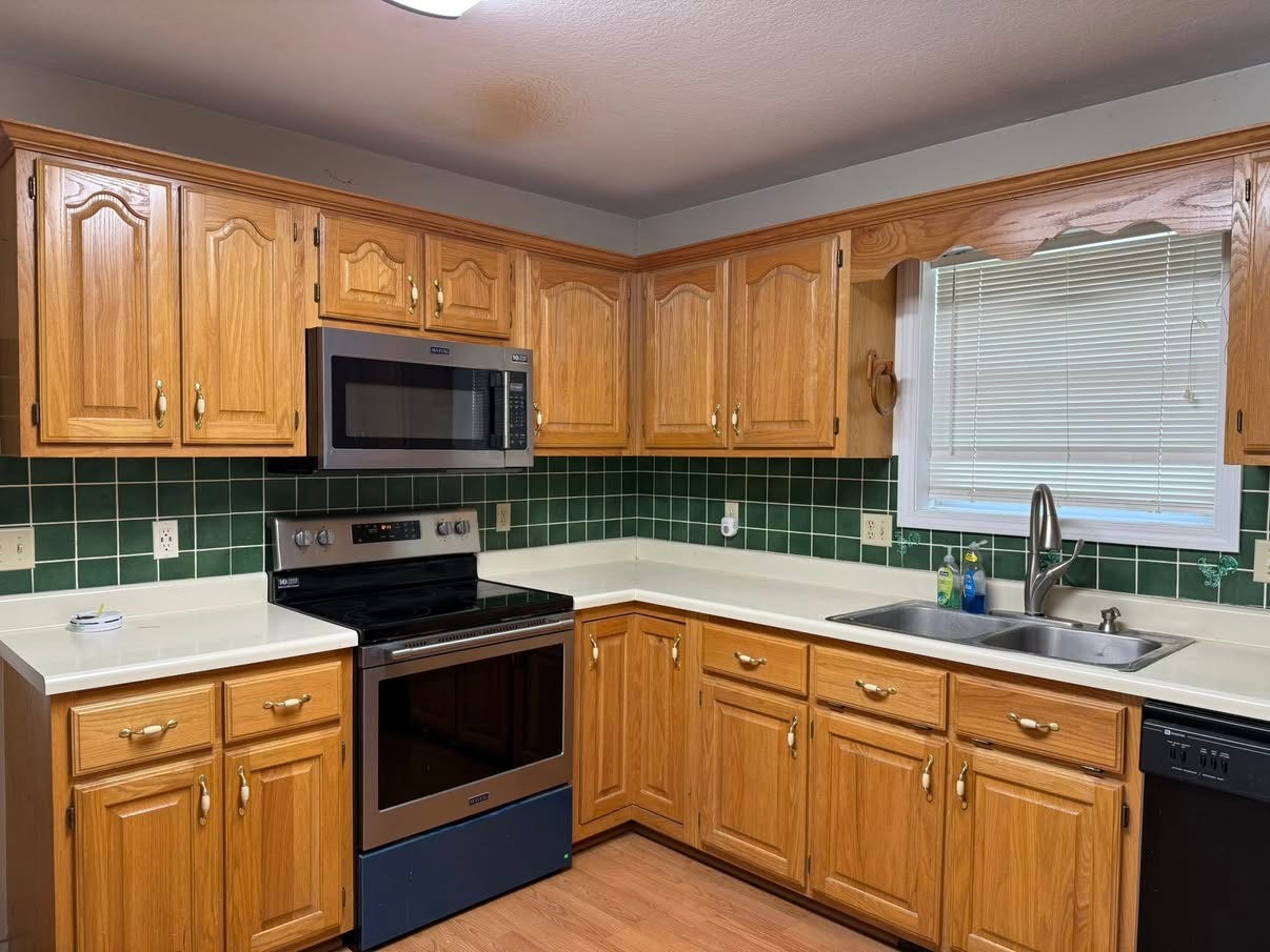 Just doing away with that backsplash with a new one, a stainless d/w when that one goes and a little color on the wall (Sherwin Williams Grassland) goes a long way to update w/o major overhaul.